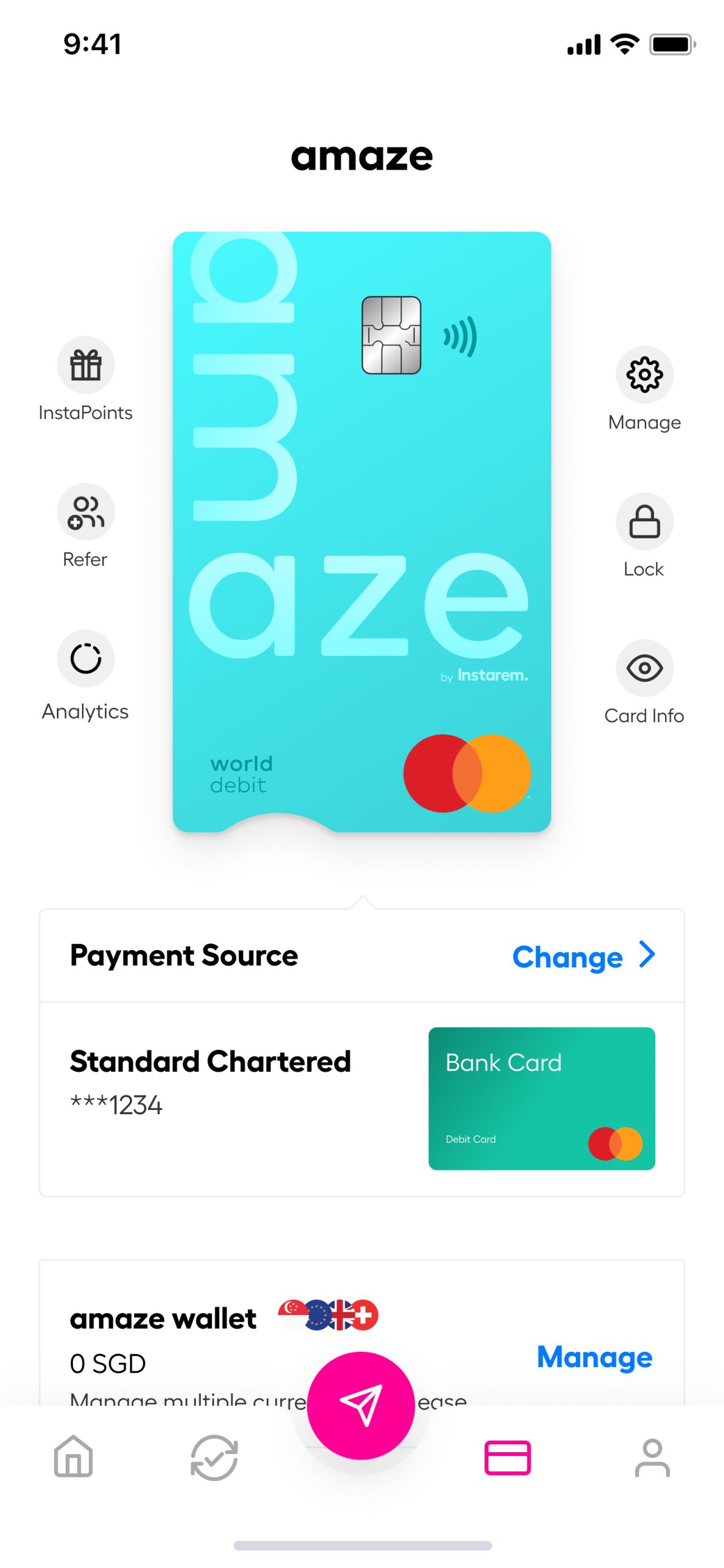 Instarem allows you to fund your amaze card through the amaze wallet via PayNow top up.