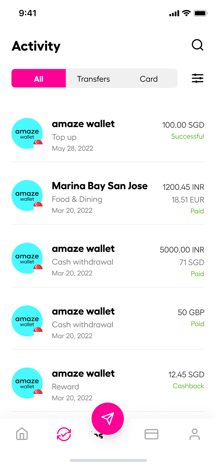 By using amaze via the Instarem app, maximise your dollar value on transactions by strategically selecting your preferred linked card for specific payments at any time. Replacing and deleting cards in-app are also super easy. The user-friendly app interface only requires you to make a few taps to complete an action.