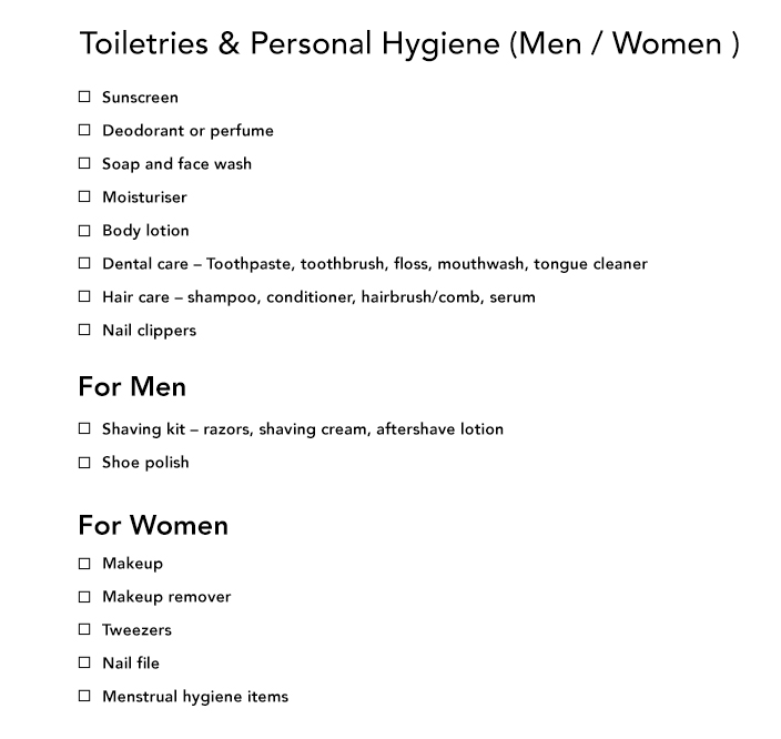 6. Toiletries & Personal Hygiene