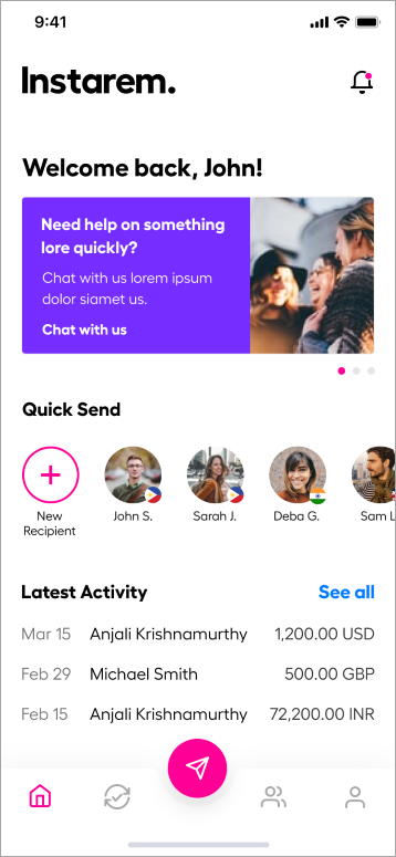 Instarem stands at the forefront of international money transfer services, facilitating fast and secure transactions for both individuals and businesses. Our platform offers competitive exchange rates for popular currency pairs like USD to INR, SGD to INR, and AUD to INR. If you're looking to send money to India or transfer funds to any of 60+ global destinations, Instarem makes it easy for you. We are dedicated to simplifying cross-border payments, providing cutting-edge technology that support individuals and businesses alike in overcoming traditional fiscal barriers normally associated with banks. As a trusted and regulated brand under the umbrella of the Fintech Unicorn Nium Pte. Ltd., and its international subsidiaries, Instarem is your go-to for reliable global financial exchanges. Learn more about Instarem.