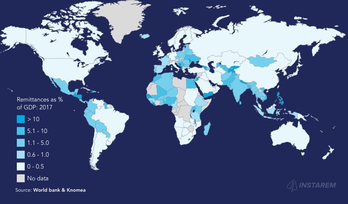 A remittance is a transfer of money by a foreign worker to their home country. These peer-to-peer transfers of funds across boarders are important for the global economy, especially for the developing countries that receive them.