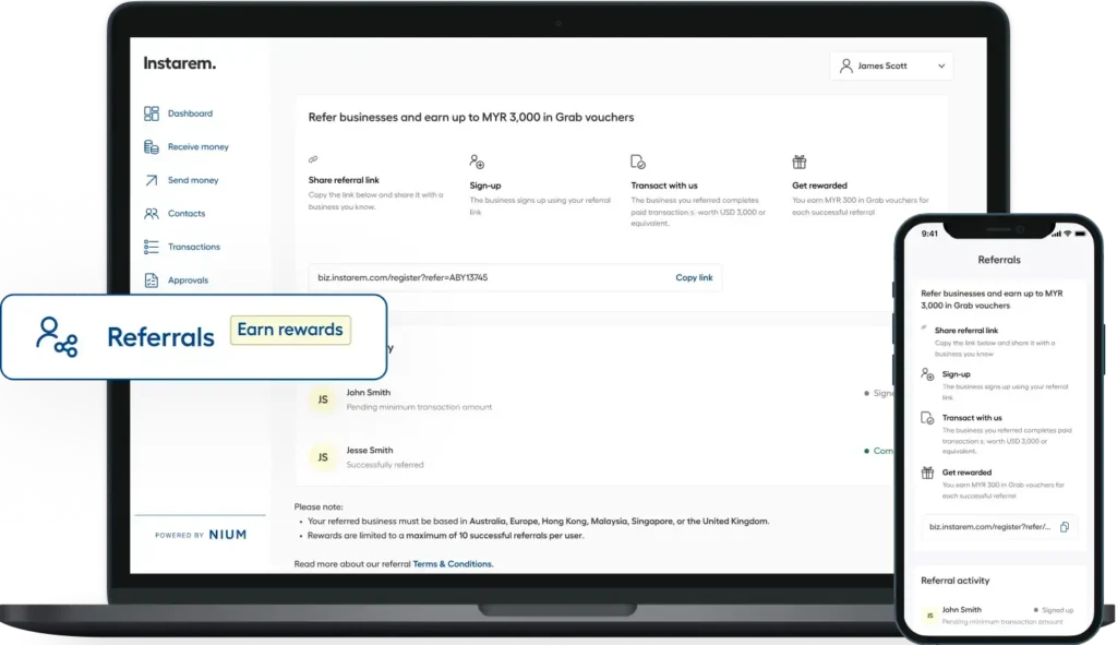 Business money transfers allow businesses to send and receive funds electronically, either within Malaysia and/or internationally. To get started, simply sign up and create an Instarem business account in Malaysia. With your account set up, you can easily start sending business payments with Instarem.